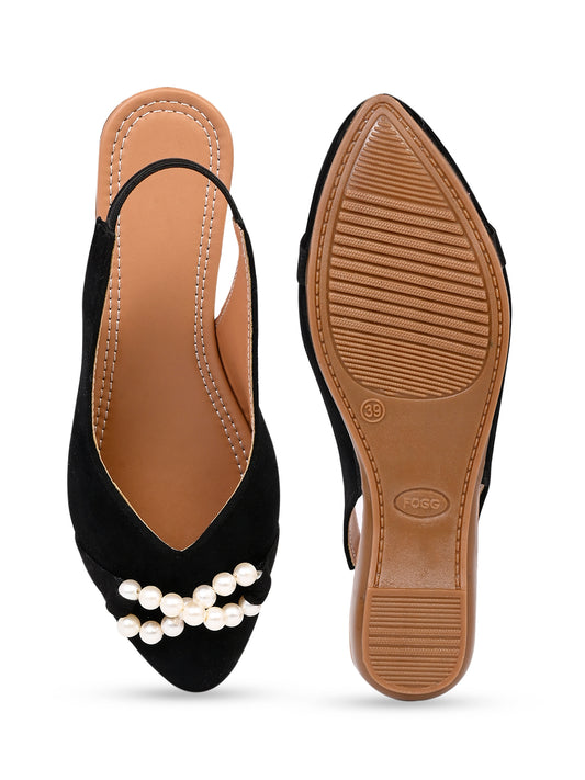 pearl detail slingbacks flats for women & girls - Black